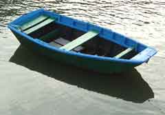 With their tombstone transoms and easy rowing lines, these bright yellow hulls made me think 'Dory'. The name of the blue boat translated to something like "Family Support". It wasn't clear whether that was the boat's function, or an explanation of where the resources had gone. |