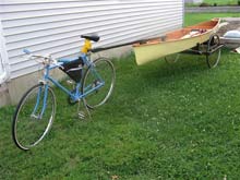 Both the canoe and cart were completed by August 5th, only a month after starting. I had also refurbished an old 10-speed Schwinn Continental to be a "tow vehicle." Since I would be leaving the bicycle on