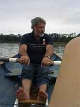 John rowing his Huff Boat.