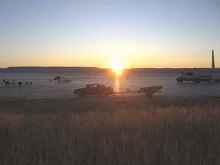 I then spent the second week of October sailing my new (to me!) Fed 5 dirt boat on the Alvord Desert in SE Oregon. Another spectacular dry lake bed, just east of the dramatic Steens Mountains (10,000 feet)! Empty country! With the playa at 4000', the nighttime temps were well below freezing, but as soon as the sun crested the eastern rim, it started to warm, eventually getting into the 60s and 70s. Not quite enough wind to fully satisfy us wind junkies, but again the camaraderie was magnificent, as was the hiking, scenery, and hot springs. The few times I did get hooked up, the giggles returned full force! What a rush! Had one session right at dusk, screaming across the desert floor, watching the sunset colors fade, and eventually straining to pick out the other boats who also were reluctant to quit! What fun! Twice a year is not enough! Some pictures of Alvord follow: