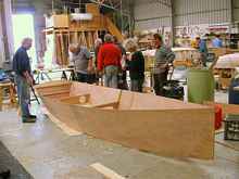 The hull is built “instant” style with no building jig required. For simple hullshapes I don’t think stitch and glue is warranted – real timber to hold the ply together is faster, more efficient and much smoother.