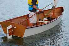 But importantly the good looks are supported by truly excellent sailing performance. Performance is close to conventional non-trapeze racing boats. Compared with colourful recreations of boats gone by – it sails rings around almost all of them and it sits well amongst the better sailing modern wood boats like Iain Oughtred’s.