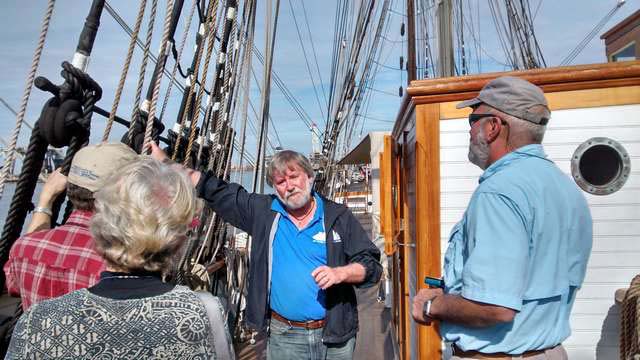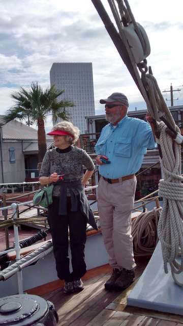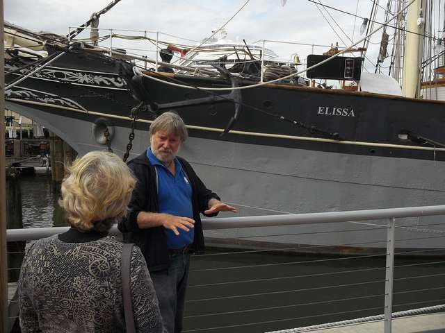 Long story short, he dropped by the workshop one day and got to talking with Carol, mentioned boats, she mentioned Duckworks, and we got an invitation for a personal tour of the Elissa. Chuck called Jamie soon after, and we had a date.