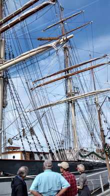 The day we were there, a huge cruise ship was docked nearby and it really dwarfed the Elissa. |