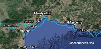 Leaving Charleston at 4:00, in intermittent torrential rains, the sky's were cloudy but quiet to Charlotte, and clear and smooth to Munich. I slept almost the whole way, which is why I'm still almost awake at 9:30 European time. Munich to Marseilles was uneventful, but Marseilles to Agde had me ready to tear my hair out. It's a simple train ride of two hours along the coast, but it took four hours to find the train.
