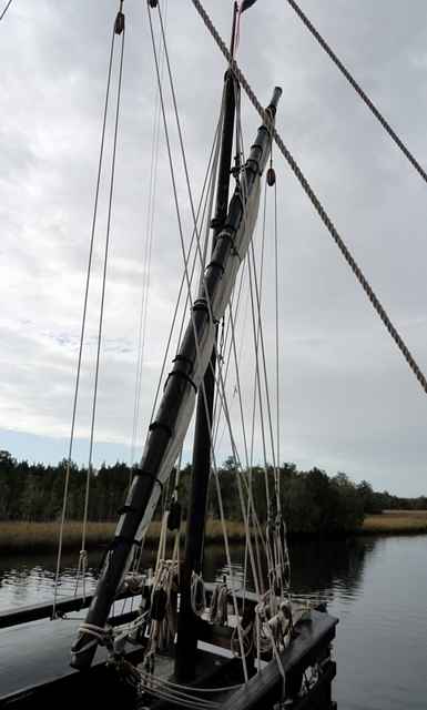 Nina's aft mast, seen from Pinta. |